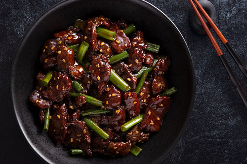 Trozos de pechuga de pollo salteados con jengibre y cebollín,...
